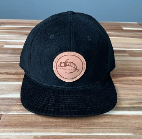 Snap back hat with a simple Fly Fish Food logo Corduroy. 1 size fits all.