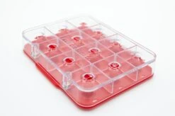 The Fulling Mill dubbing box has 12 separate compartments for holding dubbing selections. It incorporates an original ‘easy pinch’ design that allows quick access with strong magnetic closures. The boxes are stackable and come with a blank card to match the compartments, allowing you to label what you are sorting. Each compartment can hold roughly 1g of dubbing. It’s a must have for all fly tyers.
