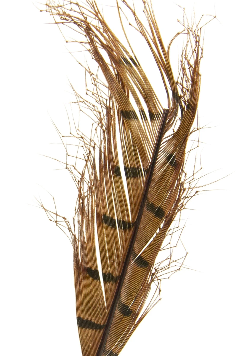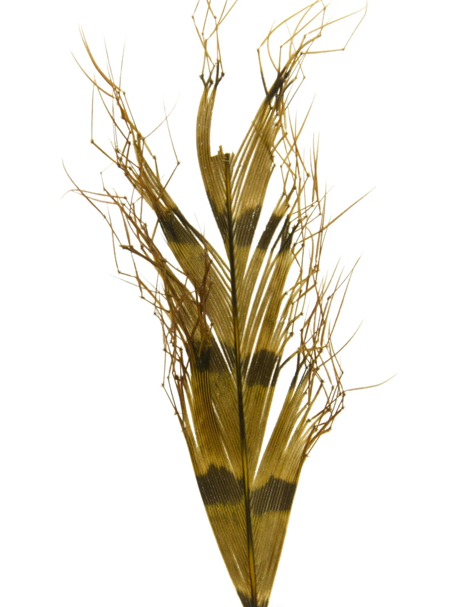 Pre-knotted pheasant cock tails. These are a great option for grasshopper legs and a variety of other instances where a buggy leg is needed.