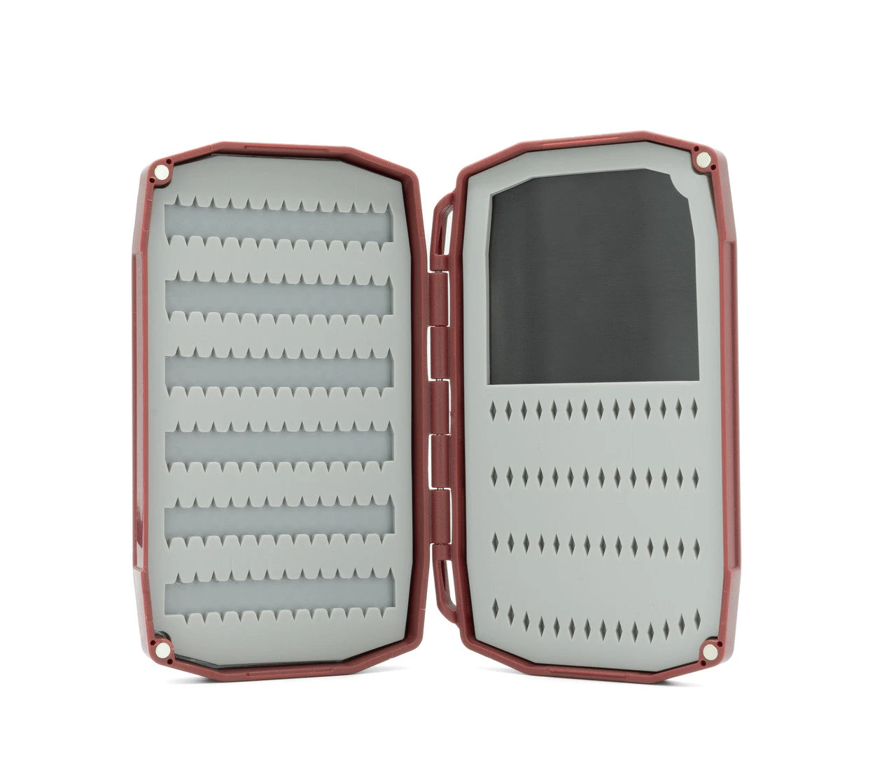 A double-sided slim compact box with a variety of slit silicone and magnetic storage options to hold all your standard and micro bugs.